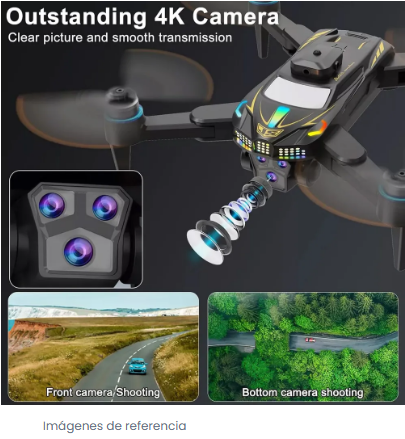 Dron 4K HD con cámara dual y 4 lentes intercambiables, gran angular de 120° y transmisión en tiempo real 5G WiFi. Incorpora sistema inteligente de evitación de obstáculos 540°, motor sin escobillas, posicionamiento óptico y estabilización EIS para vuelos estables y seguros. Ideal para principiantes y amantes de la fotografía aérea.